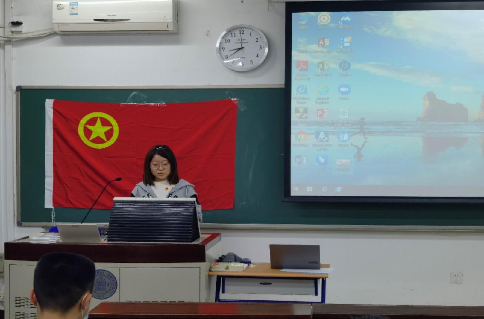 团支部宣传委员周秋桐宣读了入党推优条件,并按团校成绩从高到低,最终确定了肖天姣、姚述军、熊思朵、吴为、曹越云、魏易真、孙湉八位候选人。候选人均开展了三分钟的思想汇报。