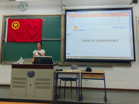 在艺术楼201,团员们分为三组进行小组讨论学习,之后由小组长作为代表分享读书感想与思考。王景辉组长从学习思维方法的顶级教材、学习党史最鲜活的史料、学习语言运用的范本,三方面阐述组内对《毛泽东选集》的研读感想和思考。周旻组长分享了小组对于《共产党宣言》第三章的共同研读成果,他阐明了组内对三种错误的社会主义思想的理解,以及对当时流行的各种假社会主义的批判的理解,并从政治、经济、文化、社会等方面分析了各种假社会主义流派产生的社会历史条件,强调了组内通过研读对社会主义的发展期望和革命的初衷的深刻理解和深入坚持。最后,于翠组长以“展示马克思主义中国化的最新成果”为出发点阐述了组内阅读的理解。