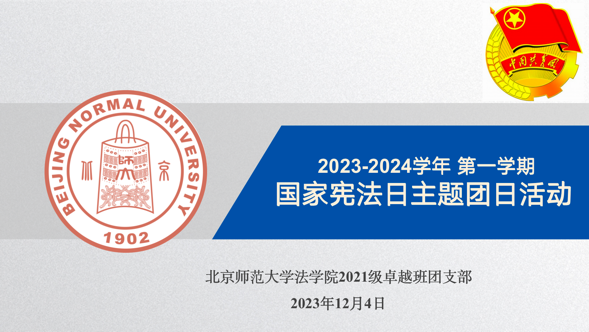 2023级本科生一班团支部宪法日主题团日活动于2023年12月9日晚7点45分准时举行,采取线上会议的方式。会议第一部分,团支书介绍国家宪法日的由来、宪法的地位和作用。第二部分,由京师法典宣讲团成员介绍《与宪同行,法护一生——宪法与宪法性权利》。