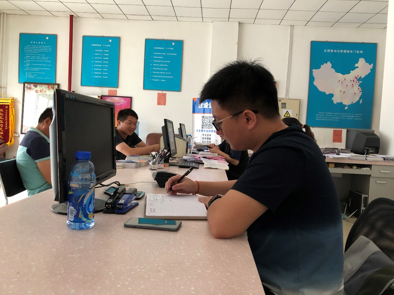 在电话咨询平台,北京致诚农民工法律援助与研究中心中有一个特别的办公室,里面共有4条专门处理法律咨询的热线,其中,有一条热线联通丰台区法院的148法律援助,每天都会有有经验的律师在148热线的座位值班,而其余三条热线则一般由实习律师、实习生来接听。电话咨询作为公益法律援助的重要途径,其相比于当面资讯更为便捷,因此,每天都会有全国各地的当事人通过法律援助热线来咨询生活中遇见的各种与法律相关的问题。通过党支部党员在法律咨询热线办公室为期两周的实习观察发现,农民工的案件每天大约占咨询案件数量的30%左右。很多农民工都是通过自己其他农民工朋友知道的致诚法律援助热线,主要拨打电话来咨询的案件类型为向包工头讨薪、索要社会保险、工伤赔偿等。
