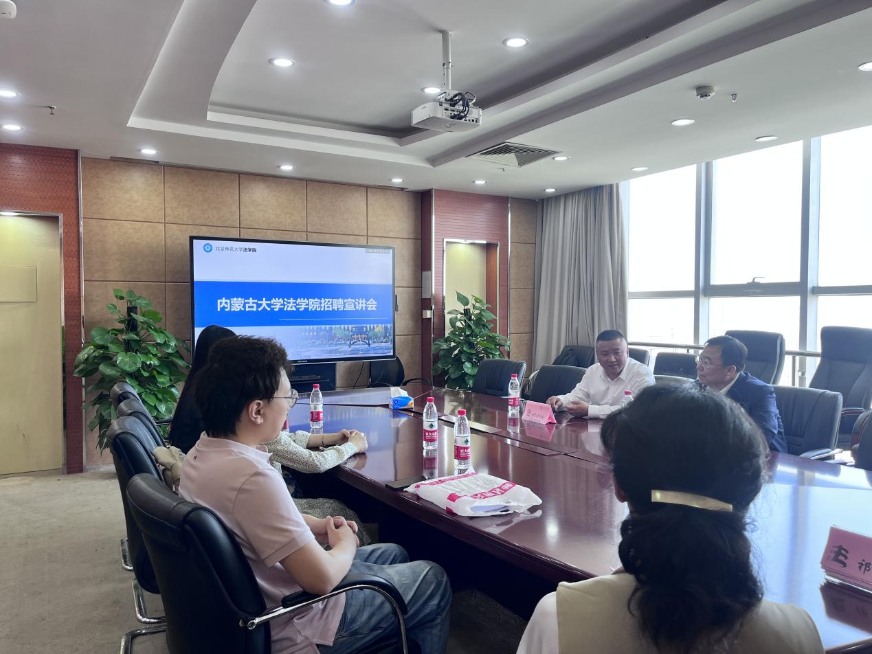 内蒙古大学cn影院 招聘宣讲会于5月18日上午十点半顺利举办。本次宣讲会以线下讲座的方式进行,内蒙古大学的cn影院 党委书记龙长海、监察官培训学院院长段计珍出席会议,cn影院 党委书记柴荣教授、副书记郭雅婷老师、辅导员祁书峰老师参会,cn影院 学子也积极参会。