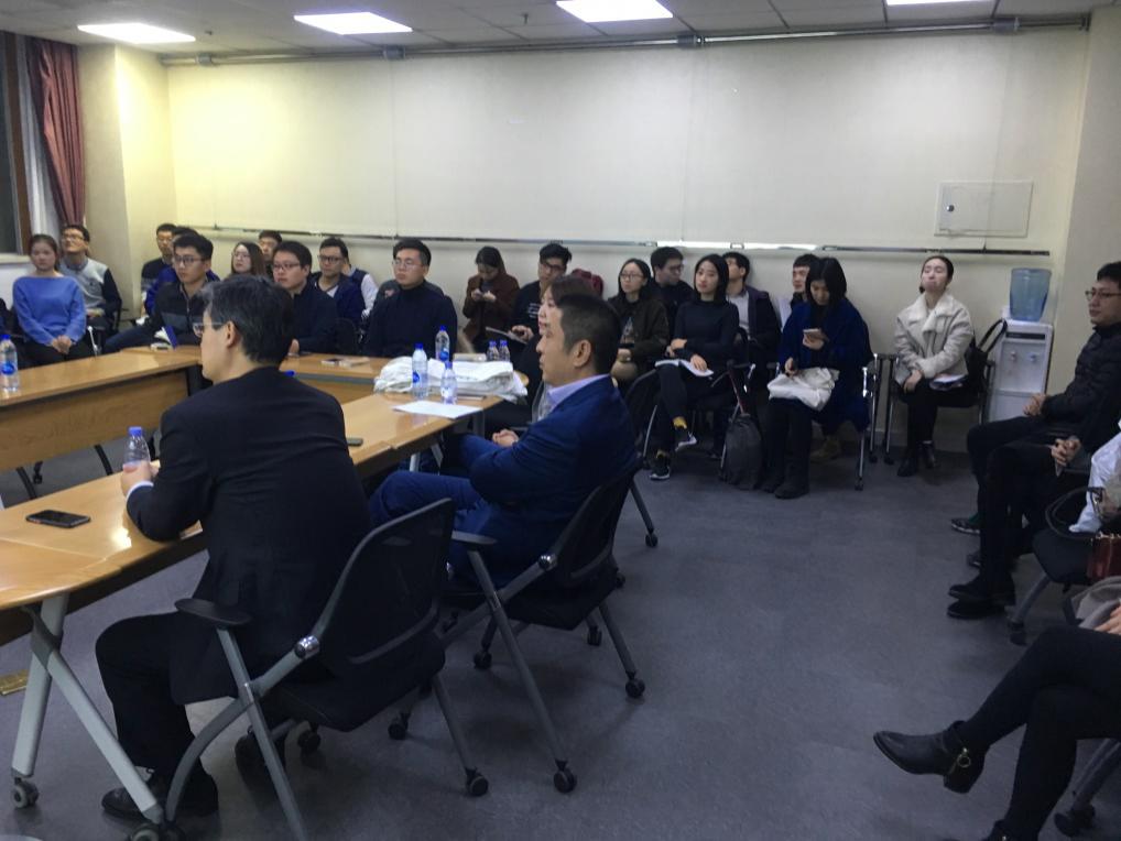 首先,由北京德恒律师事务所高级合伙人,中国国际经济贸易委员会资深仲裁员谢利锦律师为同学们介绍德恒的基本情况。谢利锦律师曾受司法部委派,赴英国培训一年 ,在伦敦大学、牛津大学进修法律课程,并先后在伦敦及香港的国际著名律师事务所美国Hunton&Williams律师事务所以及香港胡百全律师事务所工作。谢利锦律师从团队规模、律所擅长领域、行业特点等方面为我们详细介绍了德恒律师事务所的情况,列举法学生的四大择业方向,并进行了细致的优缺点比较,帮助同学们更好地进行行业选择。