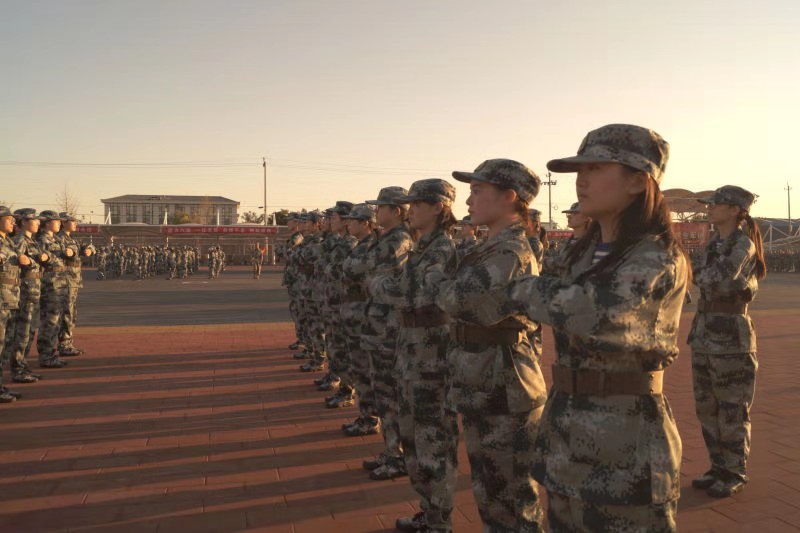 夕阳斜下,白天训练方成,夜晚训练再起。夜晚丝丝寒气之中,同学们仍昂首挺胸,不减热情。训练场边耀眼的灯光下,同学们的表情更加坚定;拂过脸颊刺面的寒风中,同学们的步履更加有力。