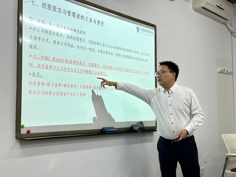 11月21日下午,cn影院 “京师法学大讲堂第32讲”于海淀校园教二206顺利举行。本次讲座主题为“公司法修订背景下公司治理热点问题研讨”,由天册(深圳)律师事务所高级顾问曾斌博士主讲。cn影院 贺丹老师主持讲座;孙新宽老师、艾惠子老师与谈。