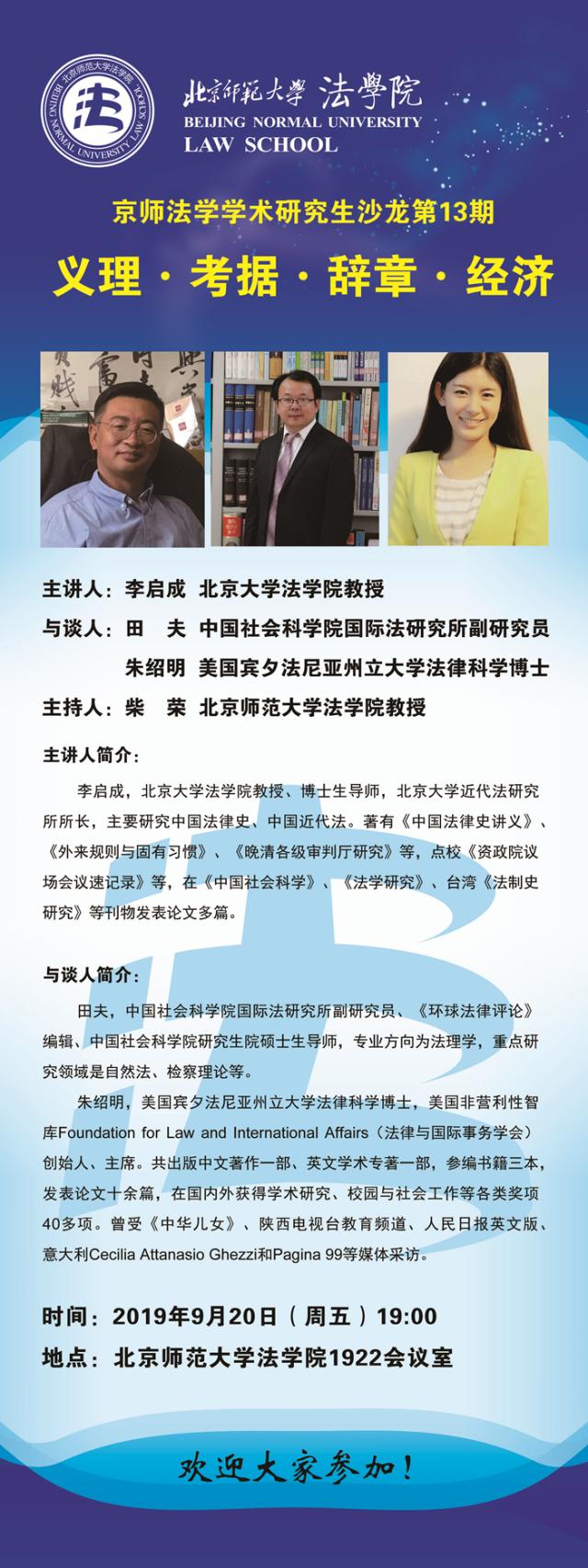 【09.20】京师法学学术研究生沙龙第13期:义理、考据、辞章、经济/主讲人:李启成