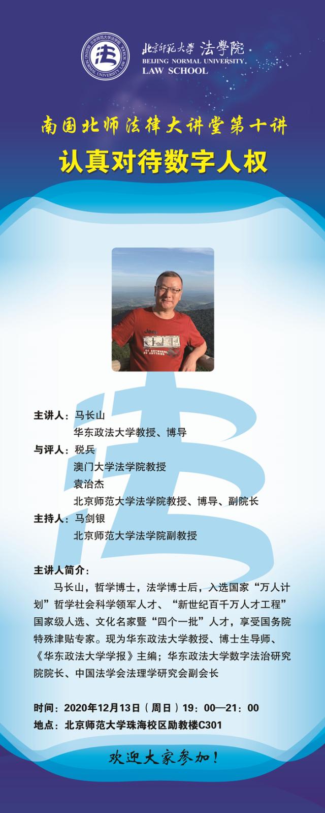 【12.13】南国北师法律大讲堂第十讲--认真对待数字人权/主讲人:马长山