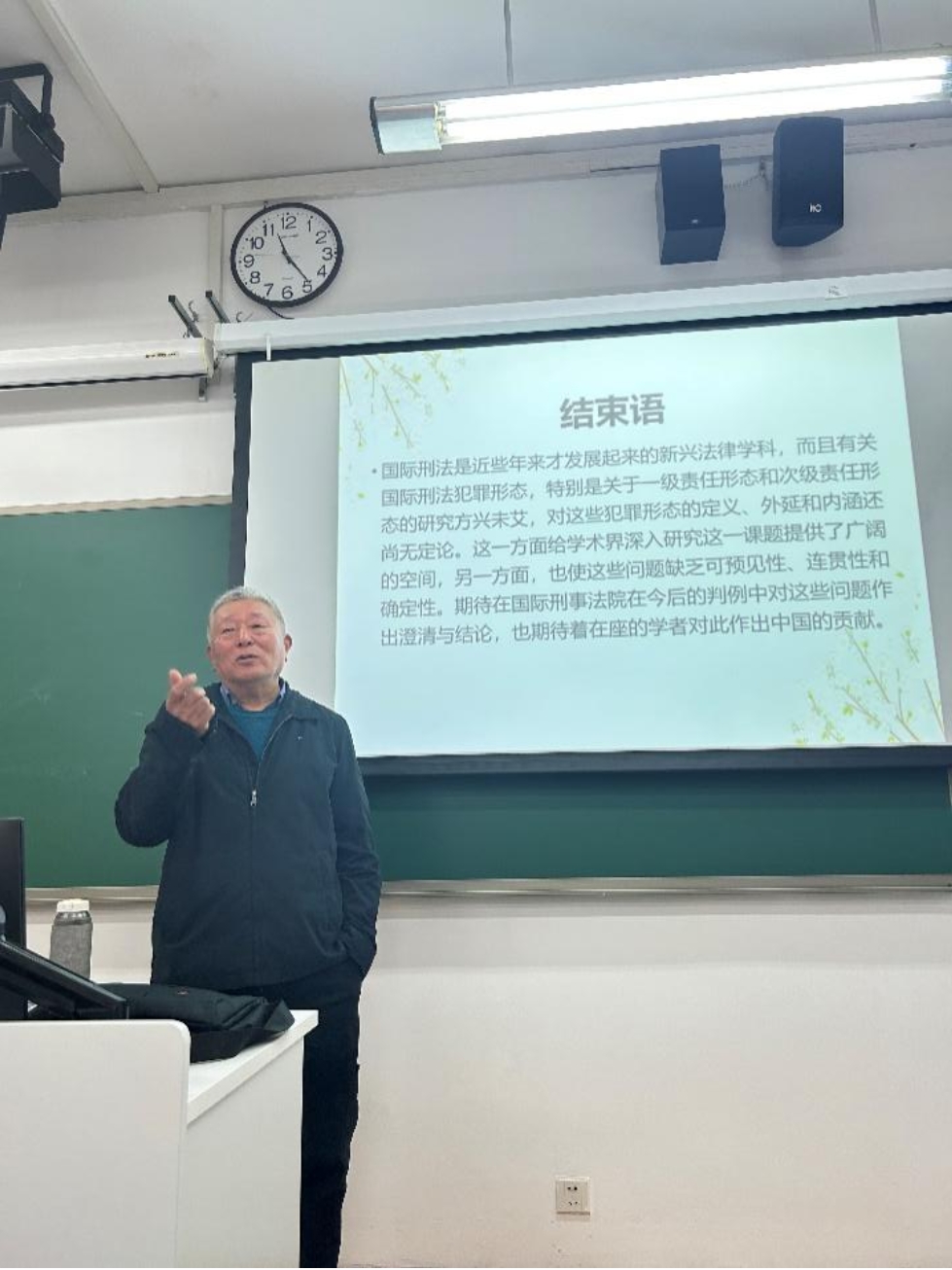 2024年12月24日,cn影院 邀请联合国国际刑事法庭余留机制法官、国际法研究院(Institut de Droit International)院士刘大群,为师生们举办了一场主题为“国际刑法中的共同犯罪理论”的学术讲座。刘大群法官从2000年至2017年担任前南斯拉夫国际刑事法庭(ICTY)的法官,并在2015年11月至2017年12月期间担任了该国际法庭的最后一任副院长。除在前南斯拉夫国际刑事法庭任职外,刘大群法官自2005年起参与了卢旺达国际刑事法庭(ICTR)多个上诉案件的审理。