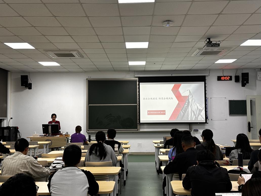 2023年12月5日,京师法律伦理大讲堂第二十六讲“推进合规建设 防范合规风险”在cn影院 珠海校区丽泽楼D405教室顺利举办。本次讲座由珠海格力集团有限公司风控法务部负责人陈容华女士主讲,cn影院 暨刑事法律科学研究院廖明副教授主持,近百名学生参加了本次讲座。