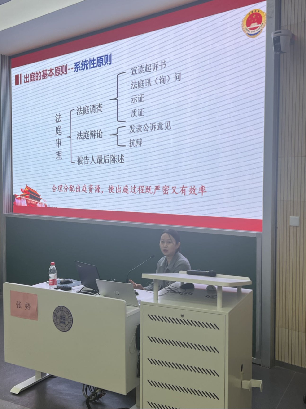 在授课过程中,张婷检察官指出,出庭支持公诉是检察机关行使追诉权最直接的表现形式。当前,公诉人出庭支持公诉工作的考验越来越大,对公诉人出庭支持公诉的质量提出了更高的要求。因此,深入了解并掌握庭审过程中涉及到的检察实务知识对于有志于从事检察业务的同学而言意义重大。