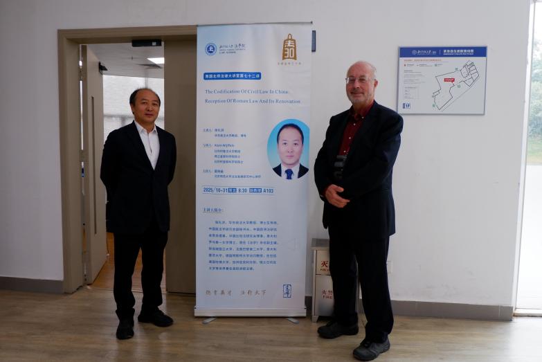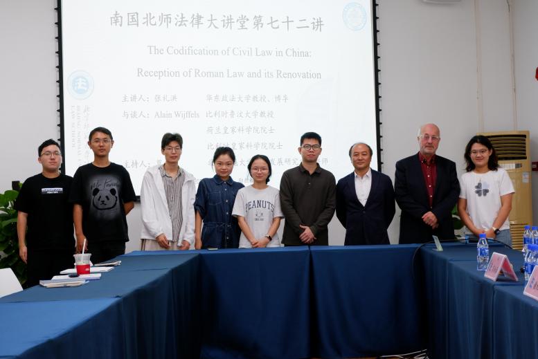 2025年10月31日,南国北师法律大讲堂第七十二讲“中国民法典编纂:罗马法的继受与创新”在cn影院 珠海校区励教楼A103会议室成功举行。本次讲座由华东政法大学教授、博士生导师张礼洪老师主讲,比利时鲁汶大学教授、荷兰皇家科学院院士、比利时皇家科学院院士Alain Wijffels老师与谈,cn影院 法治发展研究中心讲师莫杨燊老师主持。