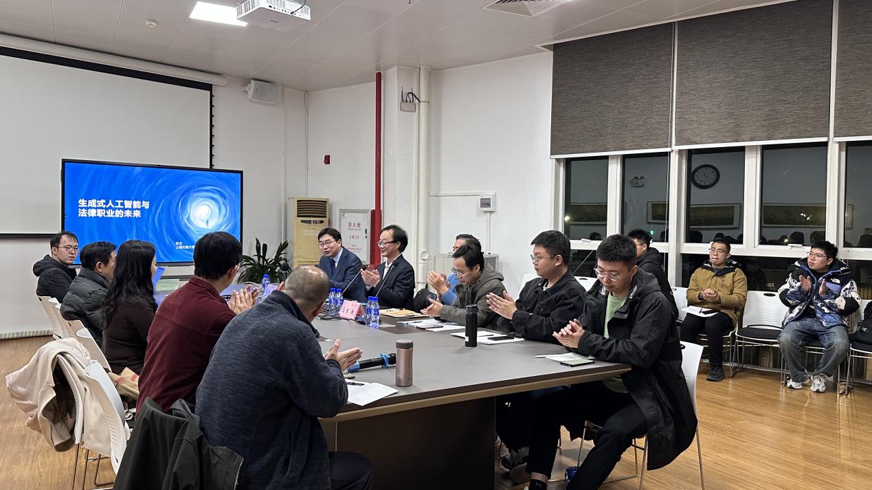 12月22日,南国北师法律大讲堂第四十四讲“生成式人工智能与法律职业未来”主题讲座在cn影院 珠海校区励教楼A103顺利举行。本次讲座由上海交通大学凯原cn影院 博士生导师、教授郑戈主讲,cn影院 教授李滨老师与谈,cn影院 副教授郭殊主持。cn影院 袁治杰、李山河、牛子晗老师及珠海校区本硕博同学到场参加交流。