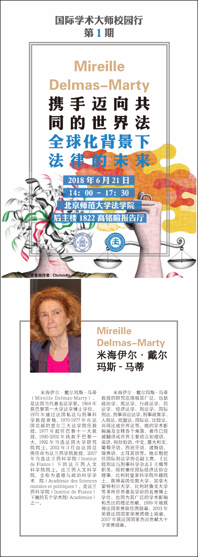 米海伊尔•戴尔玛斯-马蒂 (Mireille Delmas-Marty ),是法国当代著名法学家。1969年获巴黎第一大学法学博士学位,1970年通过法国私法与刑事科学教授资格,1970-1977年在法 国北部的里尔三大cn影院 任教授,1977年起任巴黎十一大教授,1990-2002年执教于巴黎一大,1992年当选法国大学研究院院士,2002年3月由法国总统任命为法兰西学院教授,2007年当选法兰西科学院(Institut de France )下的法兰西人文科学院院士。法兰西人文科学院,全称为道德与政治科学学术院(Academie des Sciences morales et politiques ),是法兰西科学院(Institut de France ) 下属的五个学术院(Académies ) 之一。