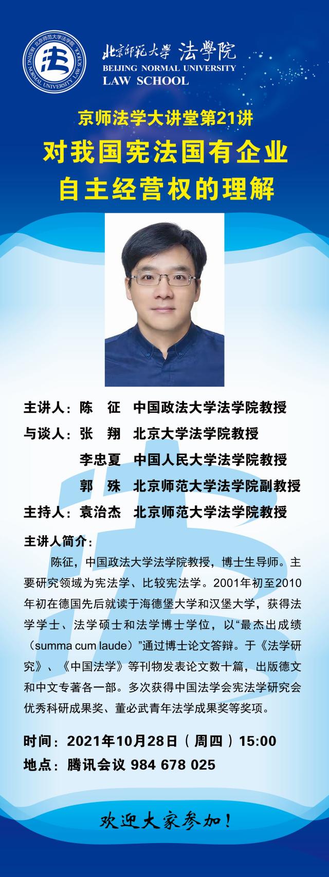 【10.28】京师法学大讲堂第21讲——对我国宪法国有企业自主经营权的理解/主讲人:陈征
