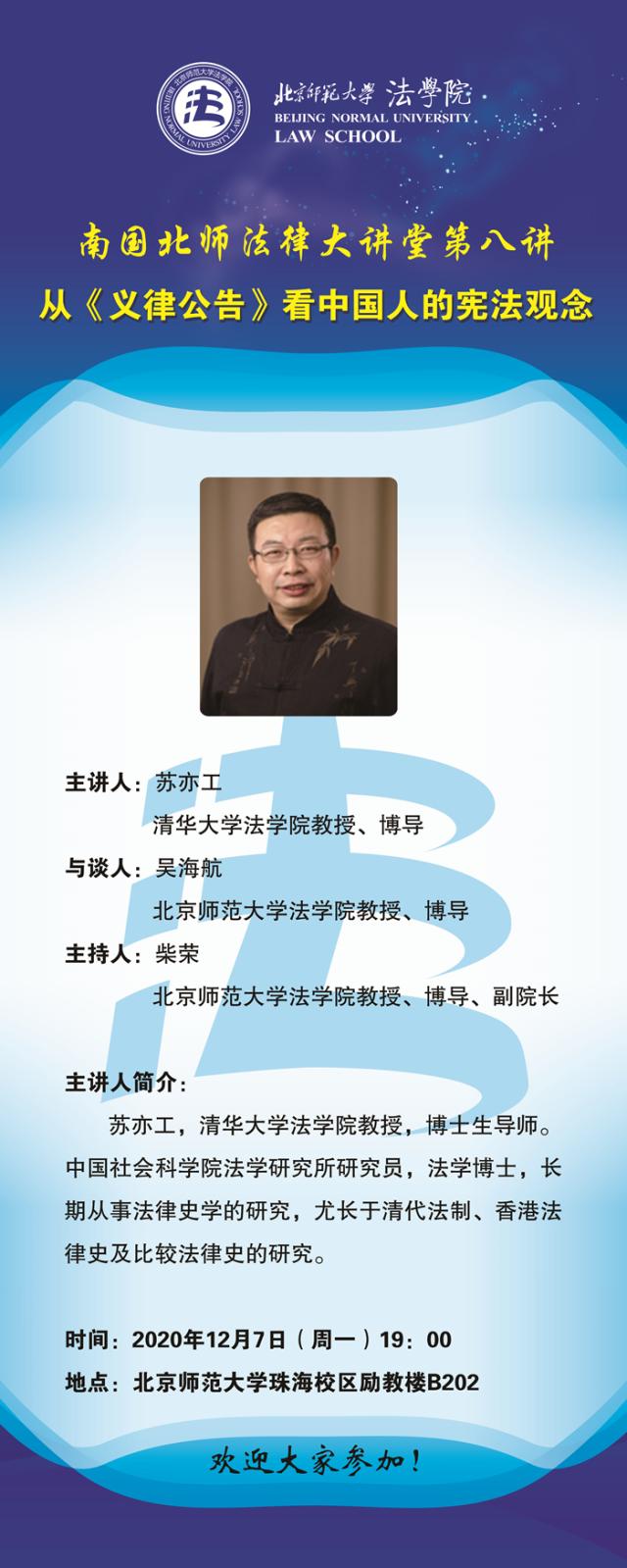 【12.07】南国北师法律大讲堂第八讲---从《义律公告》看中国人的宪法观念给学生讲座/主讲人:苏亦工