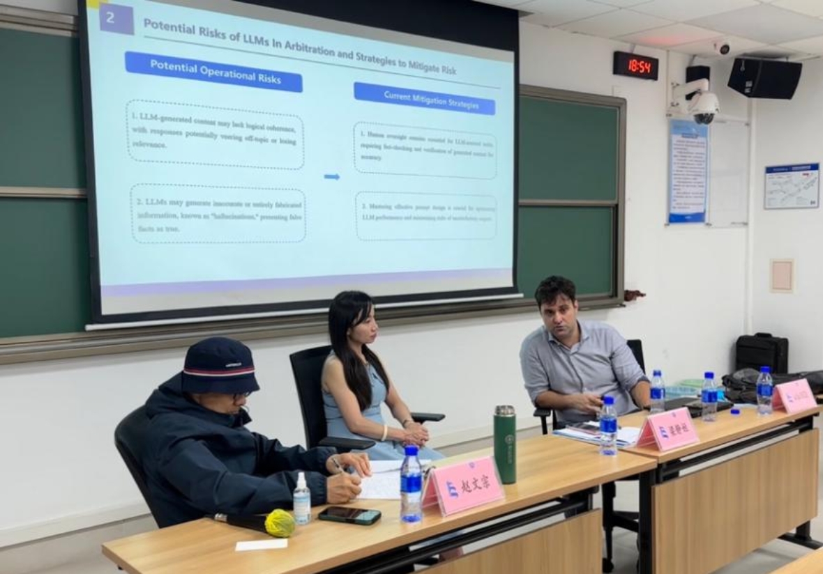 讲座伊始,赵文宗教授隆重介绍了主讲人João Moreira助理教授与梁静姮主任的研究方向与本次讲座主题,并对两位主讲人的到来表示了热烈的欢迎。两位主讲人以法律科技为交叉点,讨论以仲裁、调解为代表的替代争议解决方式(ADR)在法律实践中的应用方式与影响。