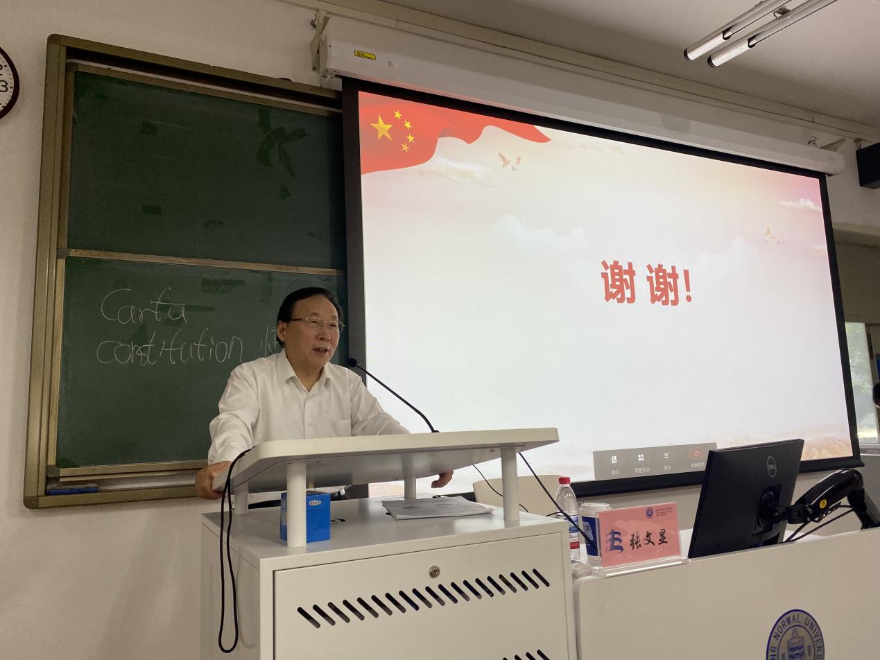 4月27日下午,京师法学名家讲坛第一百二十期“新时代中国宪法理论与实践”在cn影院 隆重召开。此次讲座特邀吉林大学哲学社会科学资深教授、中国法学会法学教育研究会会长、中国法学会法学期刊研究会会长张文显主讲。cn影院 院长梁迎修教授担任主持,cn影院 党委书记柴荣教授、夏扬教授及郭晔副教授参与了与谈,共同探讨了宪法理论与实践的丰富内涵。
