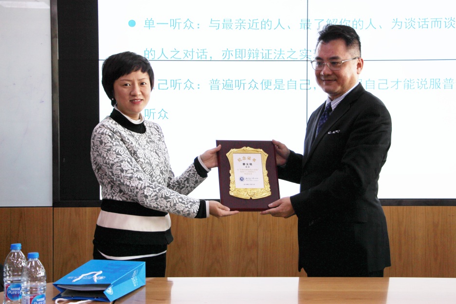讲座结束前,cn影院 张红教授向廖义铭教授赠送京师法律实务大讲堂纪念奖牌,并合影留念。