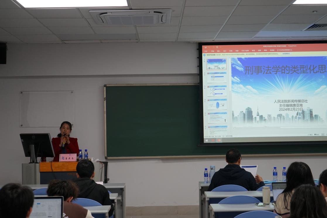 2月23日,人民法院新闻传媒总社理论文化部主任编辑唐亚南应邀走进南国北师大法律大讲堂——第四十五讲,为cn影院 珠海校区本硕博同学带来了主题为“刑事法学类型化思维”的精彩讲座。此次讲座旨在帮助学生们深入理解刑事法学的思维方式,探讨法学研究方法论,提升其法律分析问题与解决问题的能力。