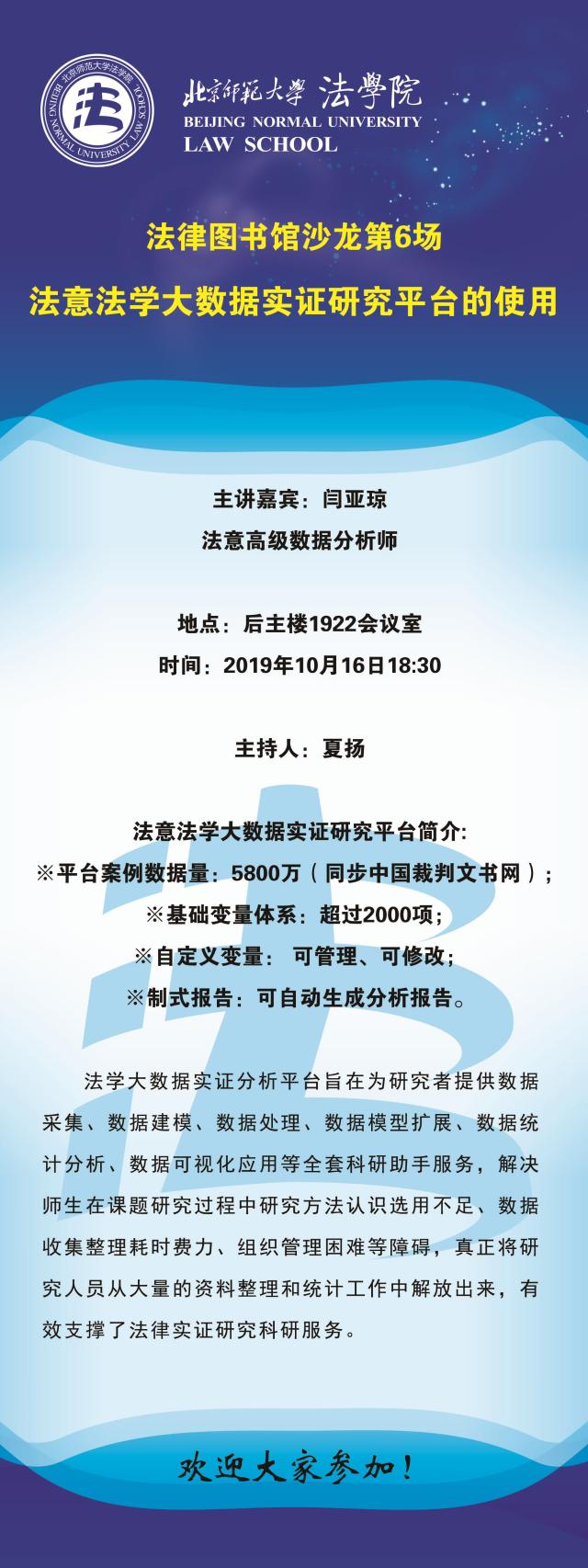 【10.16】法律图书馆沙龙第6场-法意法学大数据实证研究平台的使用/主讲人:闫亚琼
