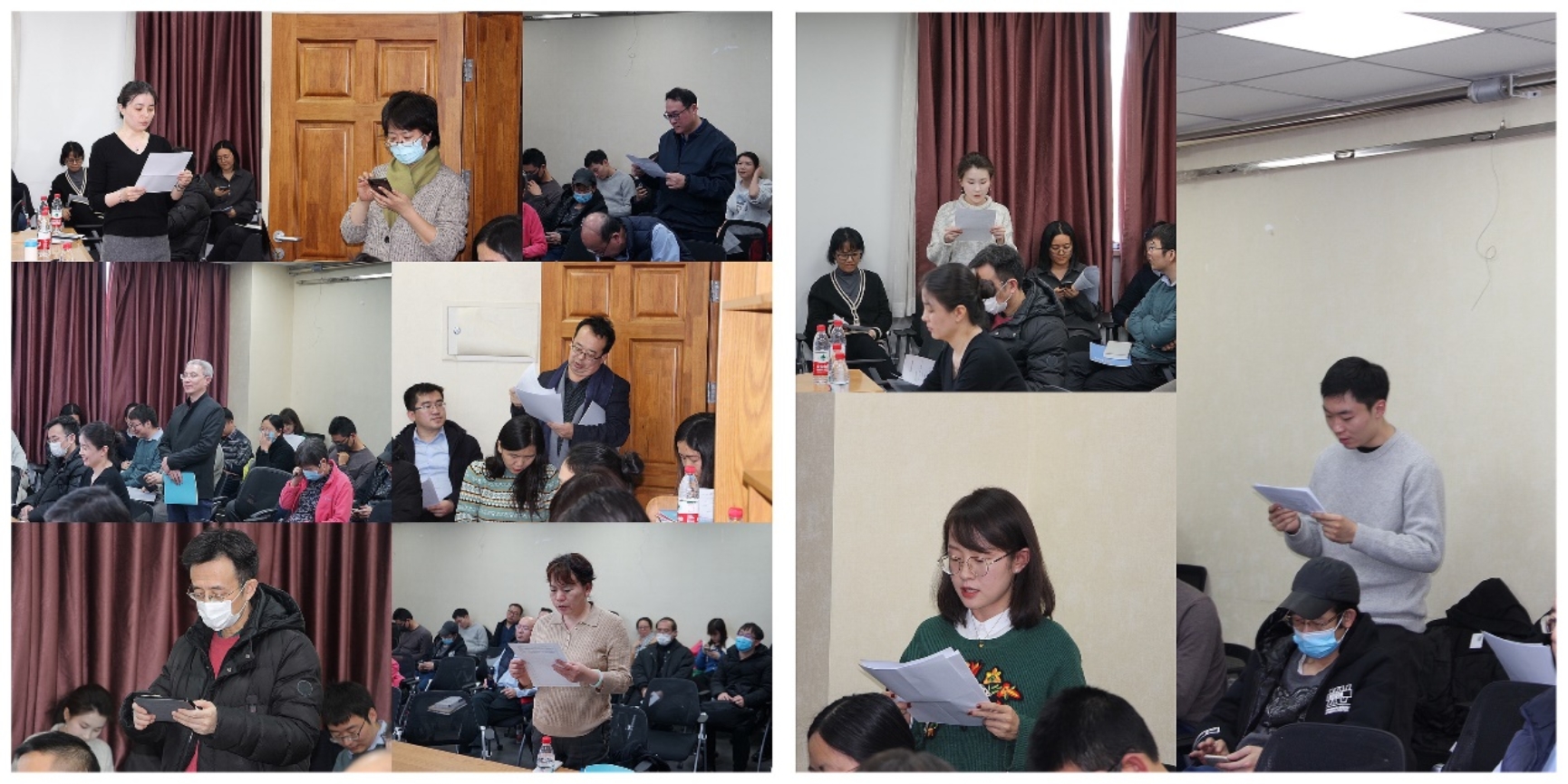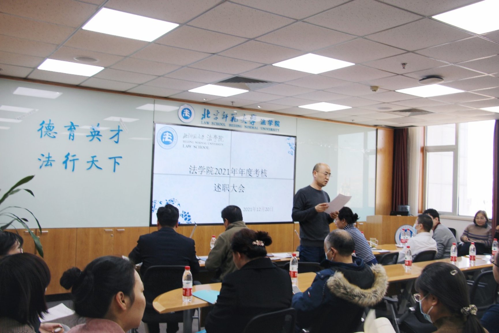 大会进入述职环节,与会教师按照基础理论法学教研中心、宪法与行政法学教研中心、刑法学教研中心、民商事法学教研中心、经济法学与环境资源法学教研中心、诉讼法学教研中心、国际法学教研中心、党政办公室、博士后研究人员、学院年度考核工作委员会成员的顺序分别从思想政治及师德自我评价、人才培养情况、科学研究情况、社会服务情况等多方面进行陈述汇报。