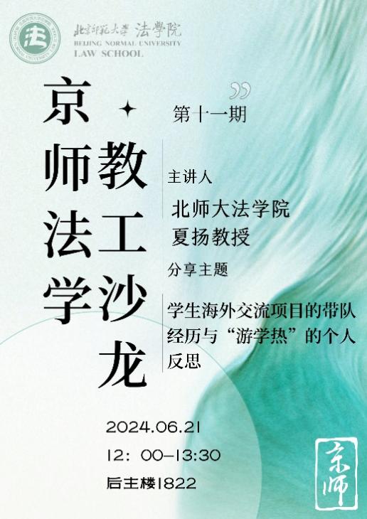 6月21日,北师大cn影院 举行第十一期“京师法学教工沙龙”。本期沙龙邀请夏扬教授主讲《学生海外交流项目的带队经历与“游学热”的个人反思》,cn影院 工会主席严厚福副教授主持本次沙龙,cn影院 三十余位老师通过线下或者线上方式参与了此次沙龙。