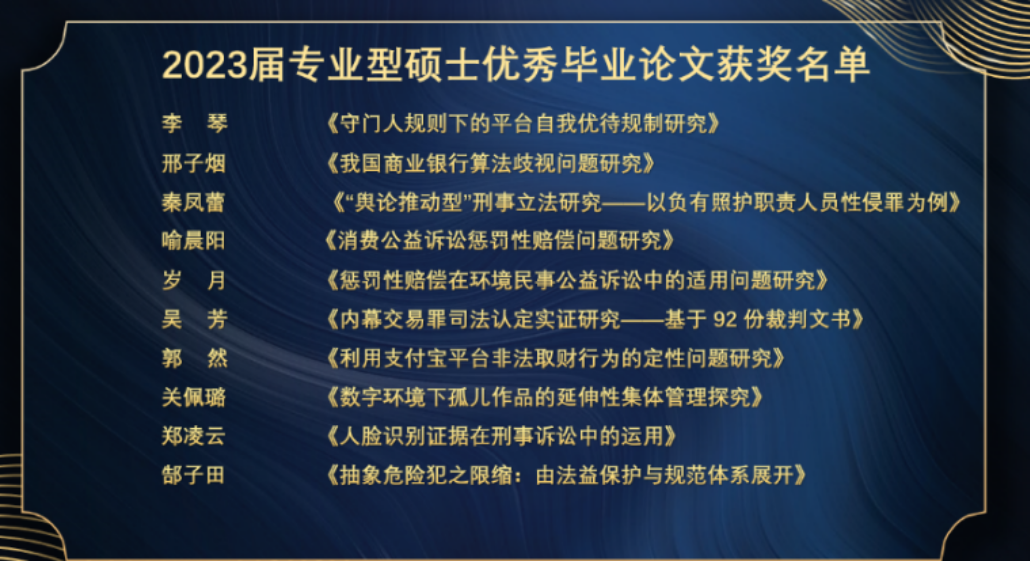 获得优秀毕业论文、优秀毕业生、春晖刑辩律师奖学金的同学依次上台领奖,老师们为获奖者颁奖,并与同学们合影留念。