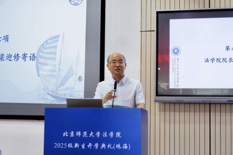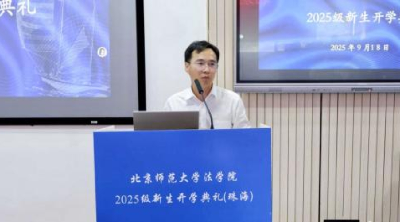 新生代表刘馨同学分享了备考阶段的奋斗历程与初入cn影院 的感悟。她坦言从五湖四海汇聚于此的学子们皆怀揣对公平正义的追求与法治建设的初心,并呼吁新生秉持“德育英才,法行天下”的院训,践行“京师法律人”使命与担当。面对适应新环境的挑战,她鼓励同窗保持平常心,不畏将来,在北师大cn影院 共同成长,为法治中国建设贡献青春力量。