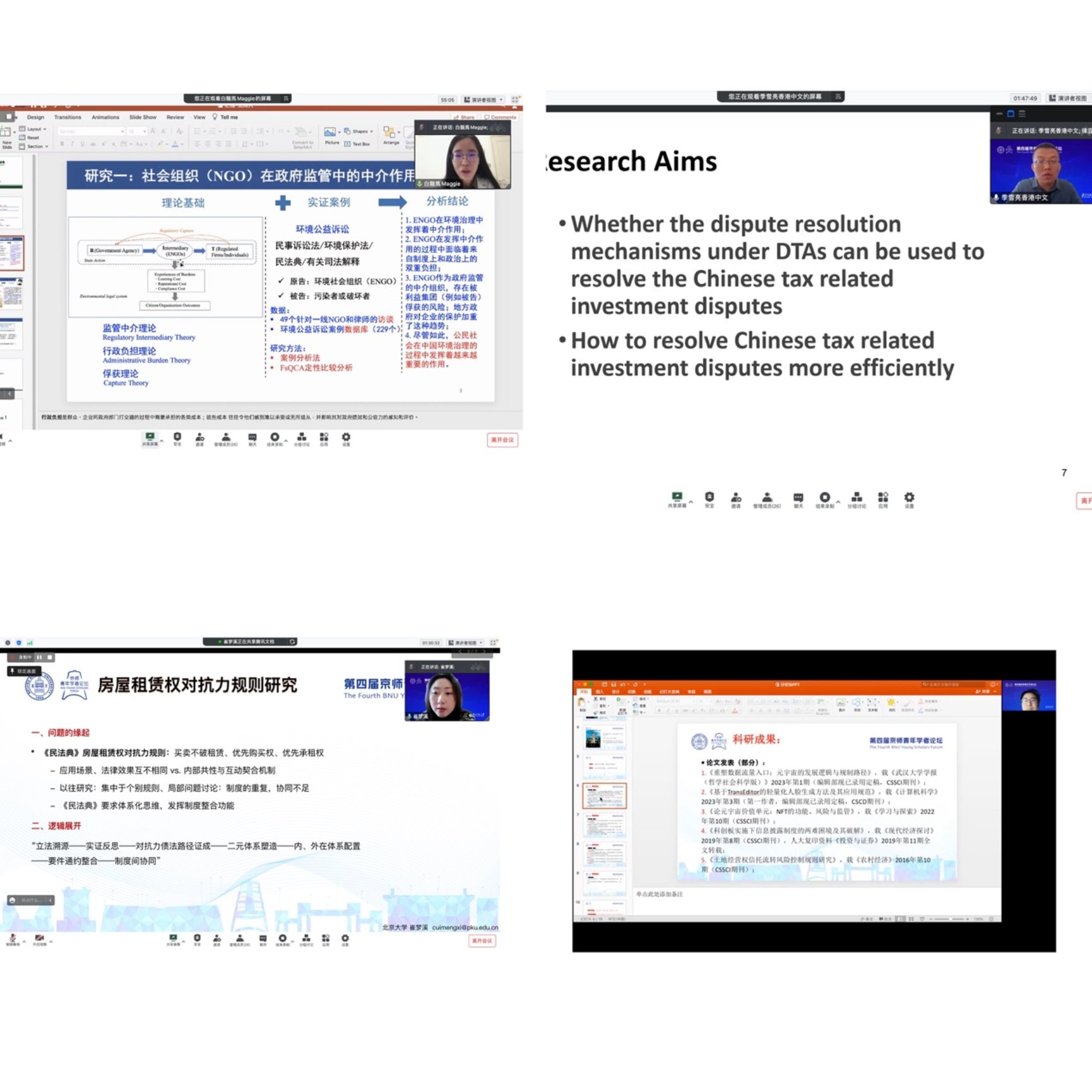 2022年12月15日,第四届京师青年学者论坛cn影院 分论坛顺利举办,本次分论坛共有来自国内外知名高校的十七位优秀青年学者参加。院长梁迎修教授、党委书记柴荣教授、副院长阴建峰教授、副院长袁治杰教授、副院长贺丹副教授、吴宗宪教授、徐胜萍教授、冷罗生教授和宋刚教授作为评委出席本次分论坛,分论坛采用线上会议方式,由副院长袁治杰教授主持。
