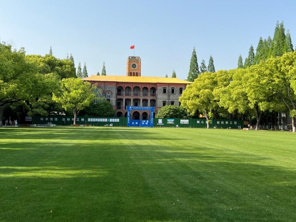 苏州大学王健cn影院 所在的苏州大学校本部(天赐庄校区),是原著名的私立高等学府东吴大学所在地,过去曾有“南东吴北朝阳”的说法,法律界人士对此耳熟能详,“南东吴”就是指东吴大学,崇尚海洋法系,即英美法学;而“北朝阳”是指位于北京的朝阳大学,崇尚大陆法系。在讲座开始前,吴宗宪教授在韩冰老师的陪同下游览了原东吴大学旧址及建筑,在东吴大学校门背后镌刻的校训“养天地正气,法古今完人”,是由当时首任华人校长杨永清提议确定的,原文出自1923年元月孙中山先生的墨宝。办公楼(钟楼)及前面的巨大草坪也令人印象深刻。