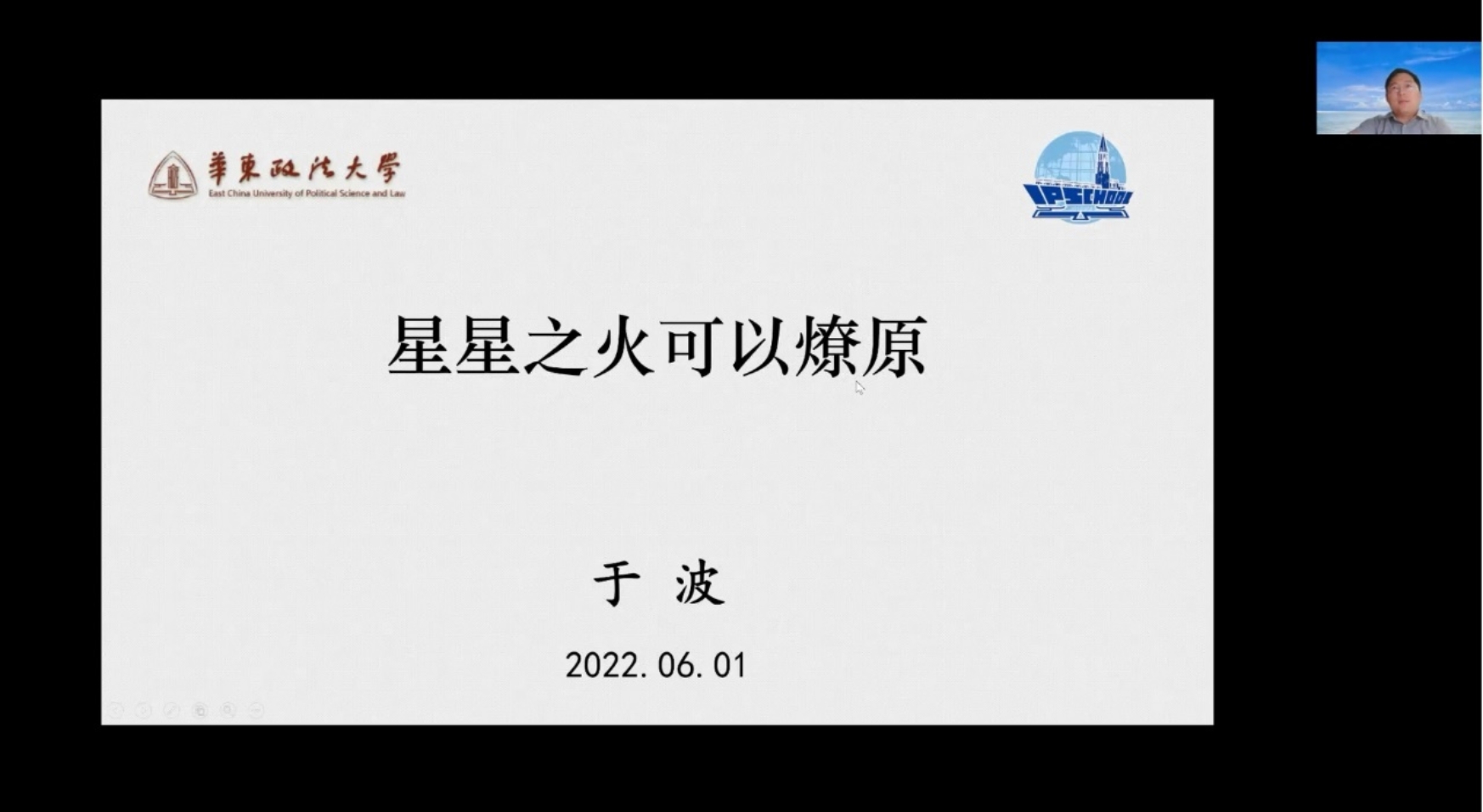 于波副教授的演讲题目是“星星之火可以燎原”,通过四个部分介绍学习、应用法语和法律的经历。