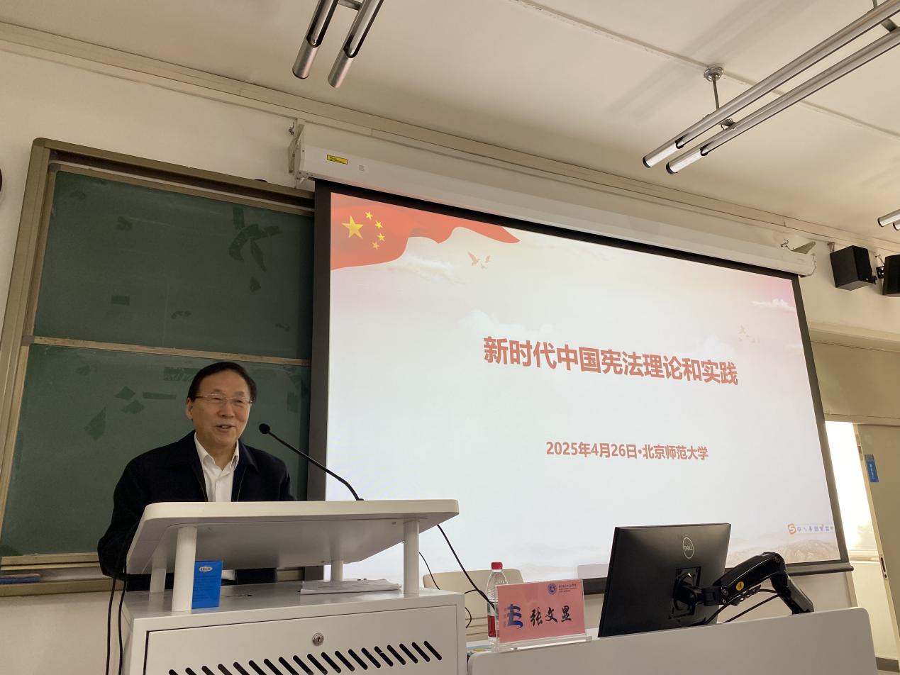4月27日下午,京师法学名家讲坛第一百二十期“新时代中国宪法理论与实践”在cn影院 隆重召开。此次讲座特邀吉林大学哲学社会科学资深教授、中国法学会法学教育研究会会长、中国法学会法学期刊研究会会长张文显主讲。cn影院 院长梁迎修教授担任主持,cn影院 党委书记柴荣教授、夏扬教授及郭晔副教授参与了与谈,共同探讨了宪法理论与实践的丰富内涵。