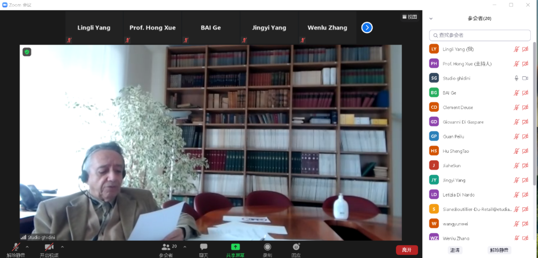 2021年11月16日互联网政策与法律研究中心主办的cn影院 全球发展战略合作伙伴项目外国专家网络讲座第三讲隆重举行,来自五个国家三大洲的北师大cn影院 20多位中外研究生、国际交换生参加了讲座。互联网政策与法律研究中心薛虹教授主持讲座。两位主讲人分别是薛教授与米兰大学终身教授、罗马路易斯大学工业产权法资深教授古斯塔夫·格第尼教授。薛教授演讲题目为“谷歌诉甲骨文版权侵权案件剖析”,作格第尼教授研究题目为“知识产权与人工智能”。演讲。