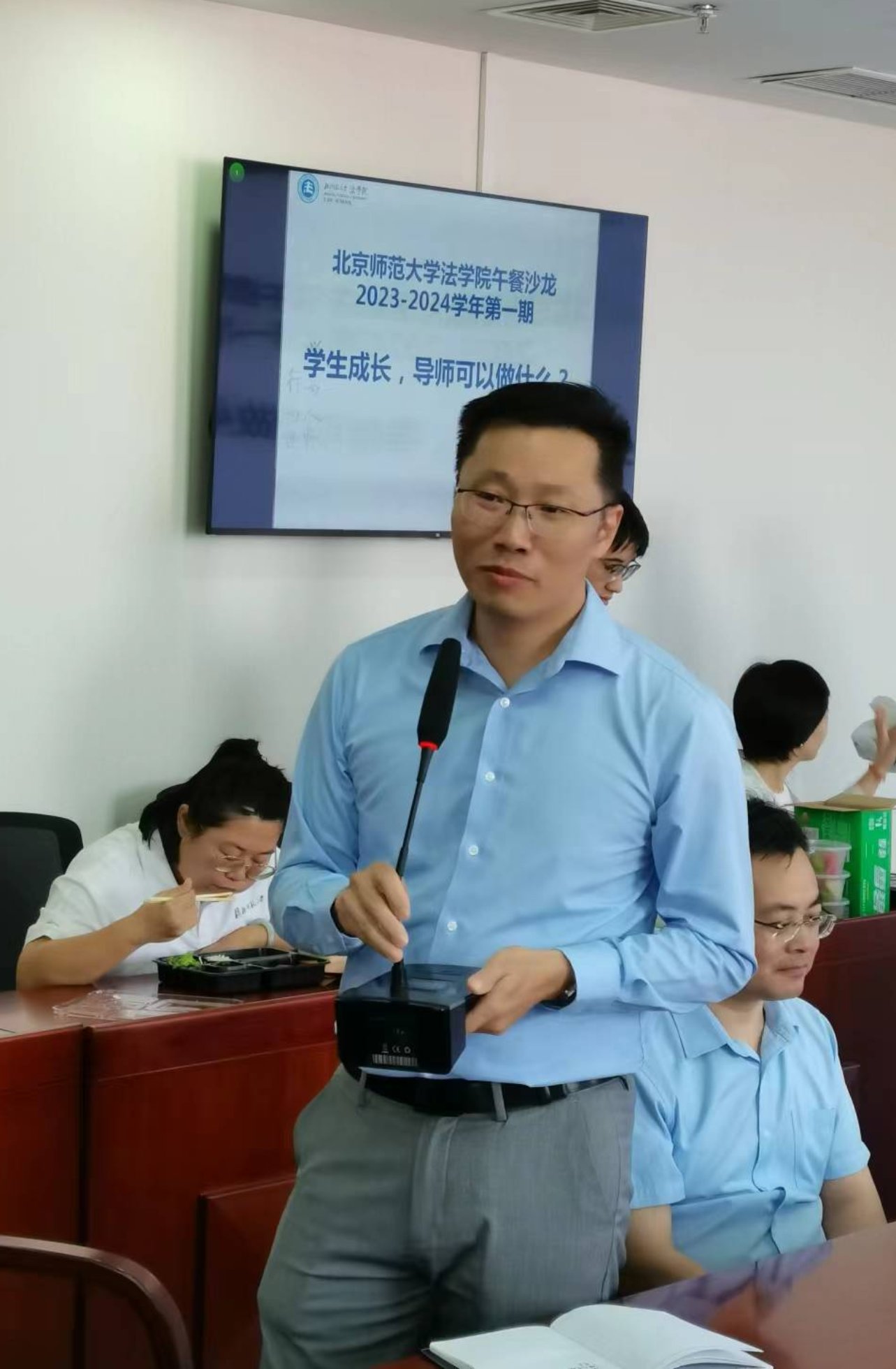 cn影院 副院长何挺教授主持本次沙龙。何挺教授介绍了沙龙的基本情况,cn影院 在疫情之前曾经举办过午餐沙龙,从本学期起,将恢复并升级为“京师法学教工沙龙”,作为学院教师沟通交流的平台,每月至少举行一次。沙龙的主题可以是教学科研过程中的经验交流、最新科研成果的发布、热点法律问题的讨论、党建学习或者社会服务中的心得体会等等,老师们也可以推荐沙龙的主题。本学期第一期沙龙的主题为《学生成长,导师可以做什么?》,邀请王志祥教授和夏扬教授作主题分享。