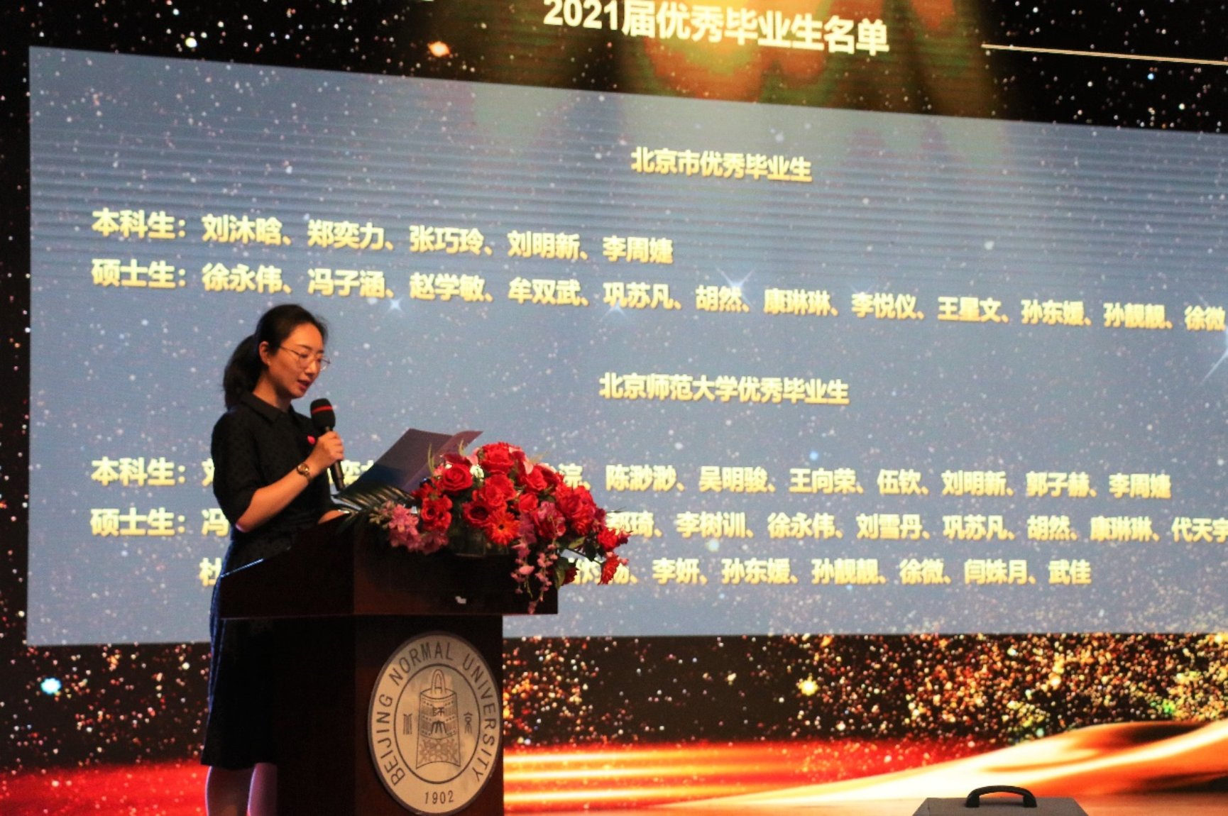 郭雅婷副书记宣读优秀毕业生获奖名单,其中包括cn影院 优秀毕业生名单和北京市优秀毕业生名单。