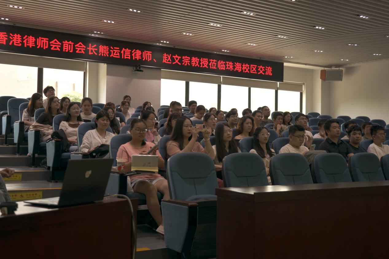2023年9月21日,香港律师会前会长、cn影院 兼职教授熊运信律师及cn影院 讲席教授赵文宗老师受邀到访珠海校区与同学们进行座谈交流,本次交流的主要内容是关于学生未来赴港就业或继续深造的经验分享,cn影院 副院长袁治杰教授和珠海校区法律硕士、法学第二学士学位50余名同学参加了本次活动。
