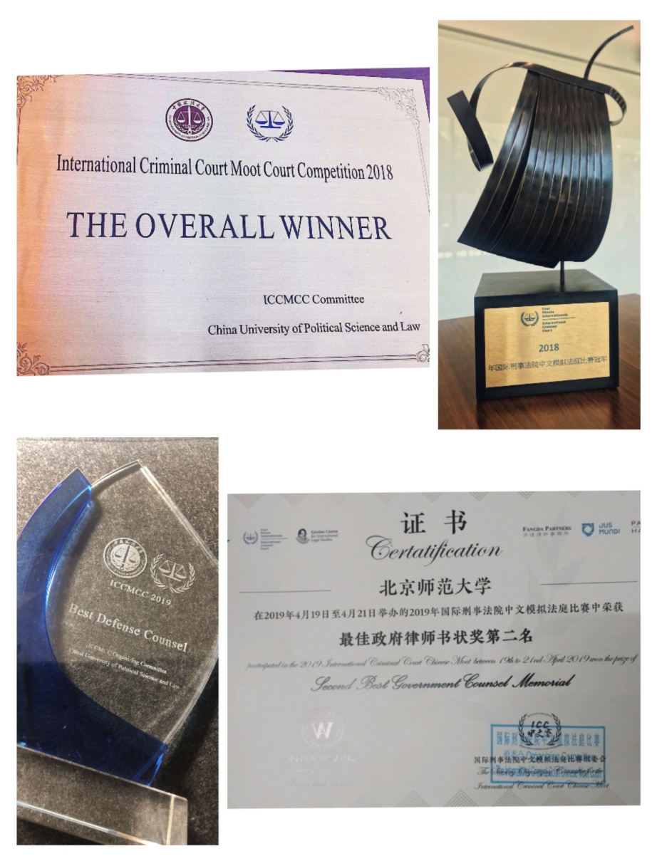在英文赛中,北师大代表队曾在2018年获得中国赛区总冠军奖、最佳被害人代理人奖;在2019年获得中国赛区二等奖、最佳辩护人奖。在中文赛中,北师大代表队曾在2018年获得冠军、最佳庭辩人奖;在2019年获得二等奖、最佳政府方律师书状奖。