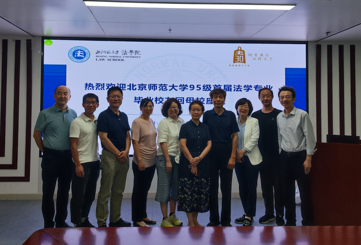 时值cn影院 法学学科创立30周年之际,cn影院 顺利举办1995级毕业校友回母校座谈会。2025年7月21日晚,cn影院 院长梁迎修教授、党委书记柴荣教授、原党委副书记魏天经老师、院史办公室主任夏扬教授、法律硕士教育与管理中心主任马剑银副教授,与张琳老师(时任1995级法学专业班主任)以及吕远、王丽娟、张静、周晖煜等1995级首届法学专业毕业校友代表,齐聚后主楼1822高铭暄学术报告厅,回望北师大法学专业的初创历程,薪火相传话成长,共话未来谋发展。
